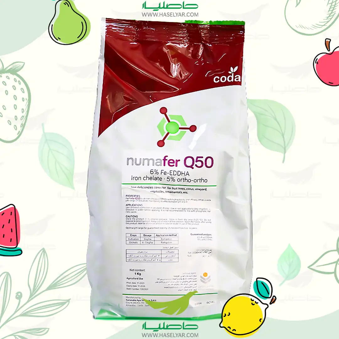 این محصول حاوی ۶ درصد آهن کلاته EDDHA به همراه ۵ درصد ارتو-ارتو است که جذب آهن توسط گیاهان را به طور قابل توجهی افزایش میدهد. آهن نومافر Q50 به شکل میکرو گرانول ارائه میشود و برای استفاده در انواع محصولات کشاورزی، باغی و زراعی مناسب است.