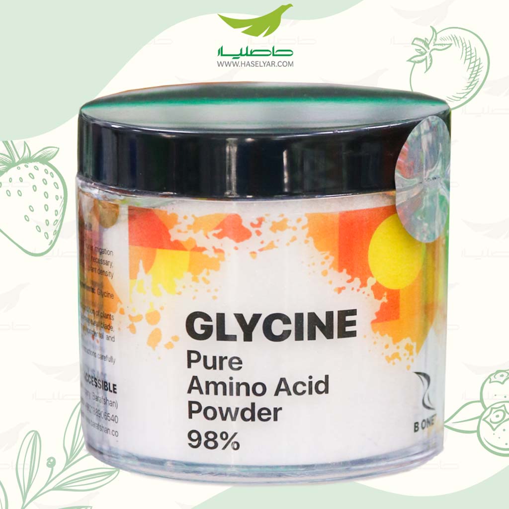 گلایسین، تنها اسید آمینه ی 98 درصدی موجود در کل صنعت و بازار ایران با عملکردی بسیار سریع می‌باشد. این محصول سبب بهبود شرایط فیزیکی گیاهان، افزایش رشد و نمو (افزایش پهنک برگ، افزایش رشد رویشی و …)، رفع تنش های